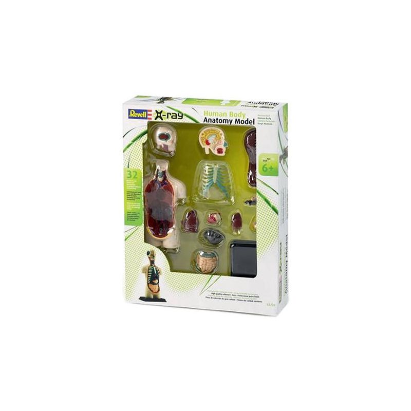 Este kit es ideal para explicar la anatomía del cuerpo humano. El modelo muestra el interior del cuerpo humano, principalmente los órganos internos como el corazón, el estómago, el tracto digestivo, los pulmones y el hígado. También muestra una sección vertical a través del cerebro.