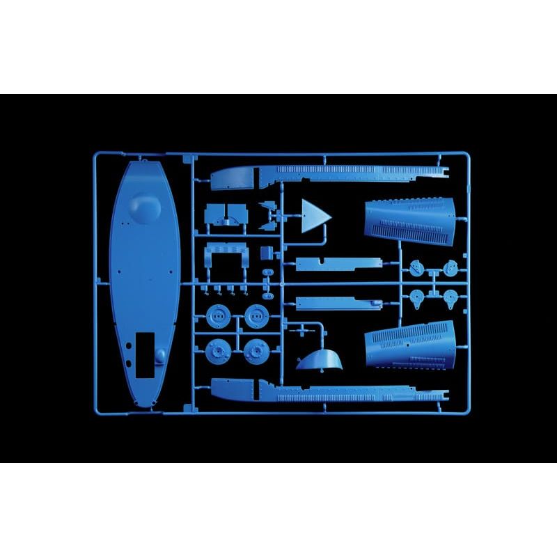 El kit incluye capós movibles lo que permite ver el gran detalle del motor; además incluye ruedas de goma, tornillería, piezas cromadas, tubos y cuero artificial, fotograbados y calcas para dos versiones.