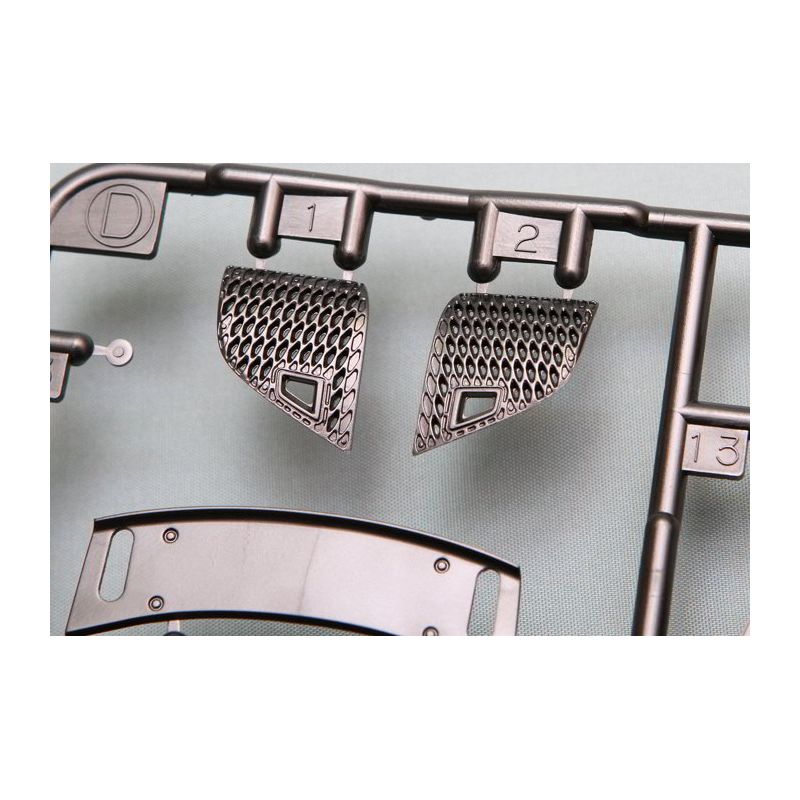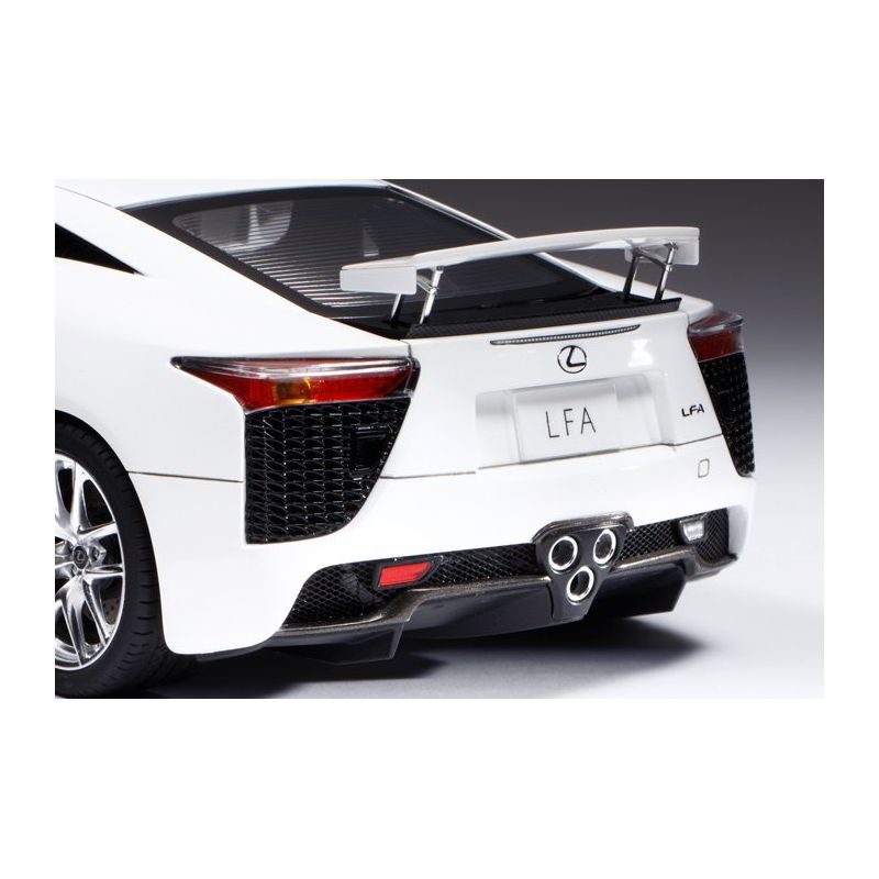 El diseño elegante y aerodinámico se ha reproducido con exactitud. El capó delantero se puede abrir después del montaje. El motor del Lexus LFA se ha reproducido con exactitud en gran detalle. El interior y el tablero de instrumentos se reproducen fielmente. El m odelo puede ser ensamblado con el alerón trasero desplegado o retraído. Imanes permiten partes del ala para ser intercambiados. Superficies de espejos laterales y los emblemas del modelo se representan con transferencias de metal. Los casos leves se representan con un brillo metálico plateado partes para mayor realismo. Ruedas cuentan con alfombra de metal acabado chapado para obtener un acabado fuerte La parrilla delantera y otras piezas de malla se representan con fotograbados. Los neumáticos son reproducidos con caucho sintético. Más información sobre el Lexus LFA: