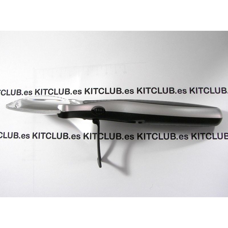 Lupa manual con mango anató mico, incorpora una lengueta abatible que permite mantener la lupa suspendida unos 6cm, excelente iluminación con 2 leds de color blanco, funcionan con 2 pilas LR6 (AA). La lente tiene un diámetro de 73mm y 3,6 aumentos.
