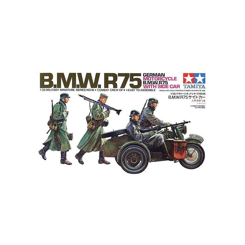 | - El kit incluye moto BMW-R75 con sidecar y 4 figuras a escala 1:35. | |